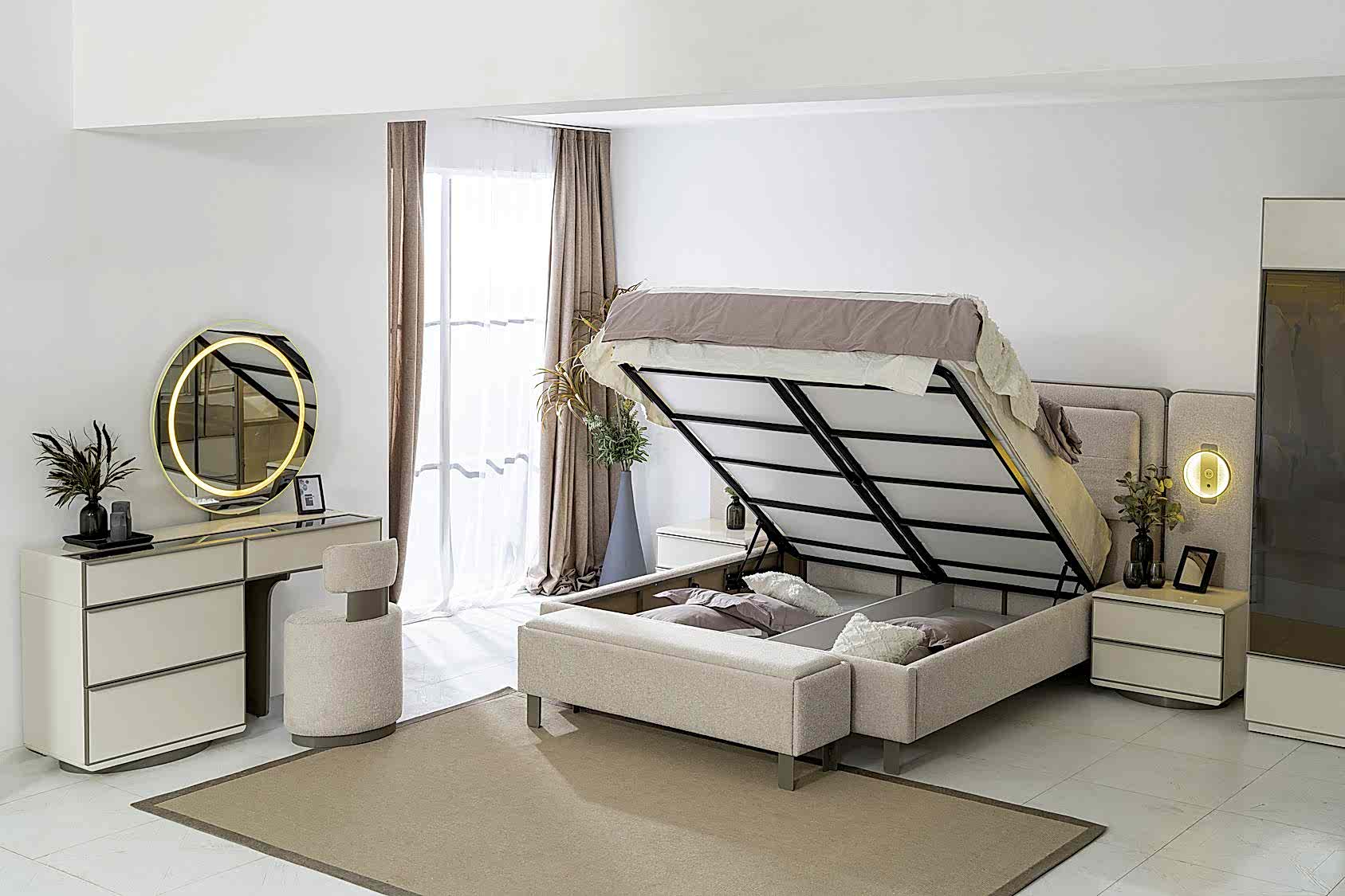 | Takım İçeriği | - 1 adet dolap, 1 adet karyola ve başlığı, 1 adet şifonyer ve aynası, 2 adet komodinden oluşmaktadır.