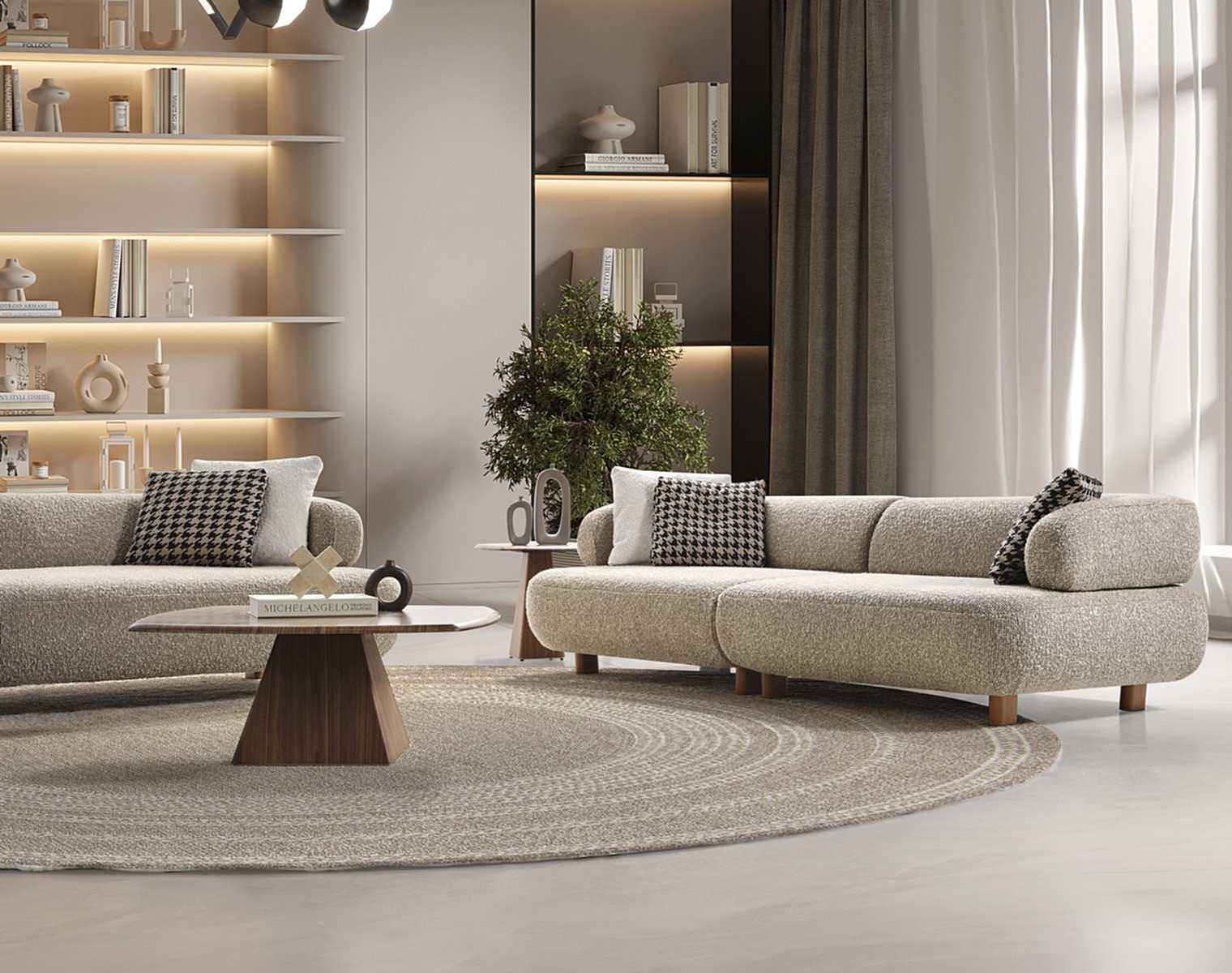 Lavına Koltuk Takımı, modern tasarımı ve yüksek konforu ile salon dekorasyonuna şık ve zarif bir dokunuş sağlar.
