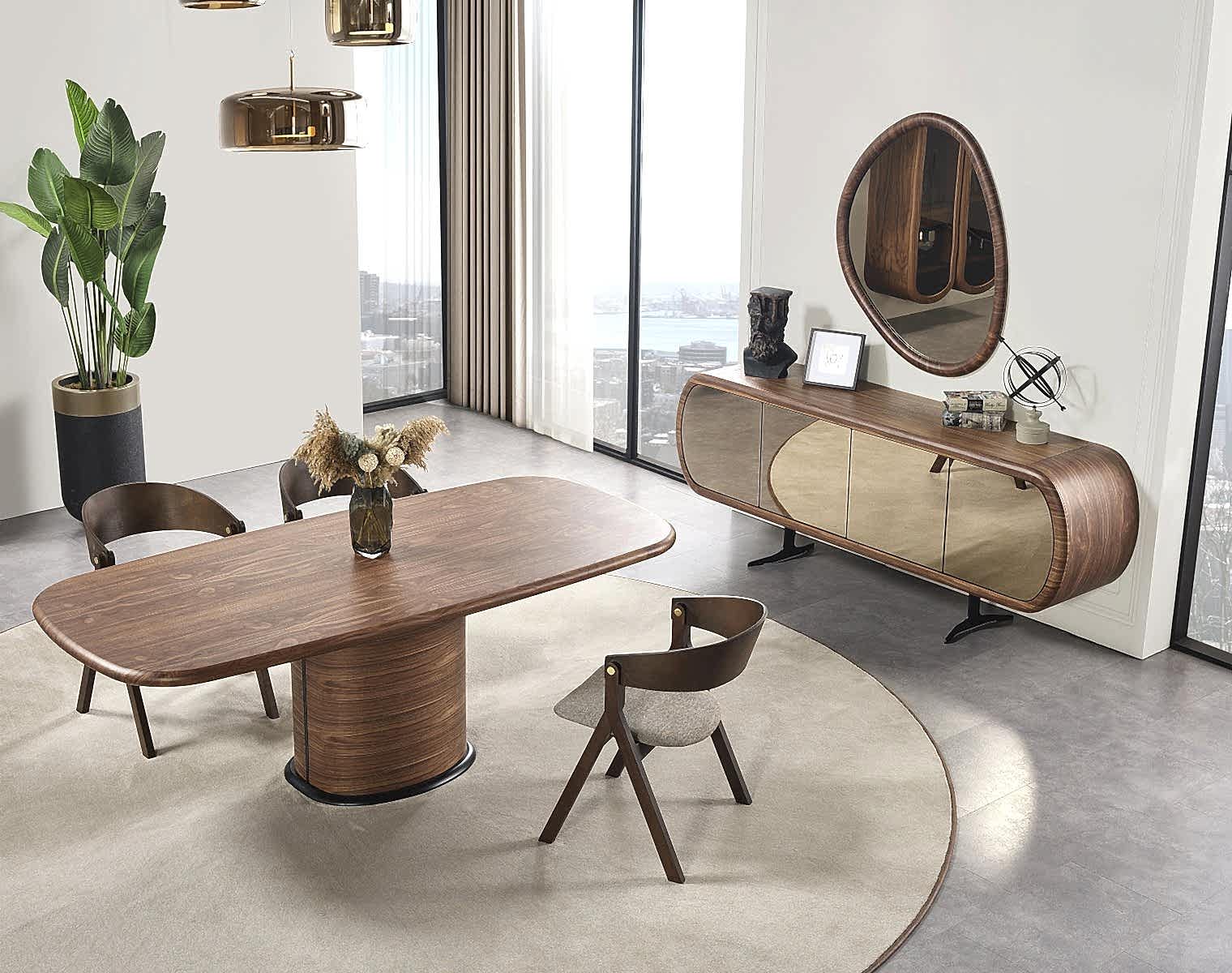 New York Yemek Odası Takımı, modern tasarımı ve doğal ahşap dokusuyla yemek alanlarına şıklık, fonksiyonellik ve zarafet kazandırır.
