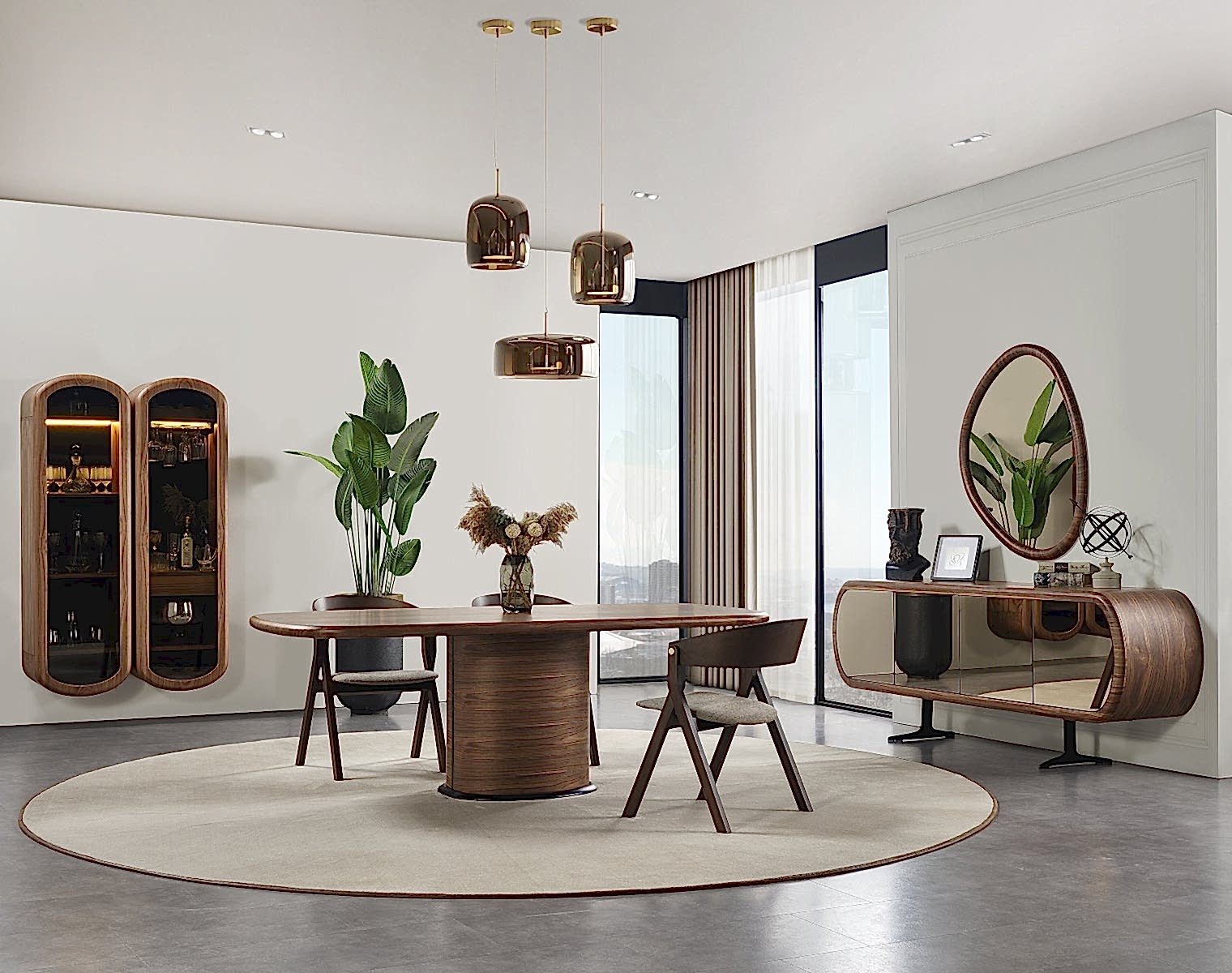 • 1 adet konsol, 1 adet konsol ayna, 1 adet masa, 6 adet sandalye'den oluşmaktadır.