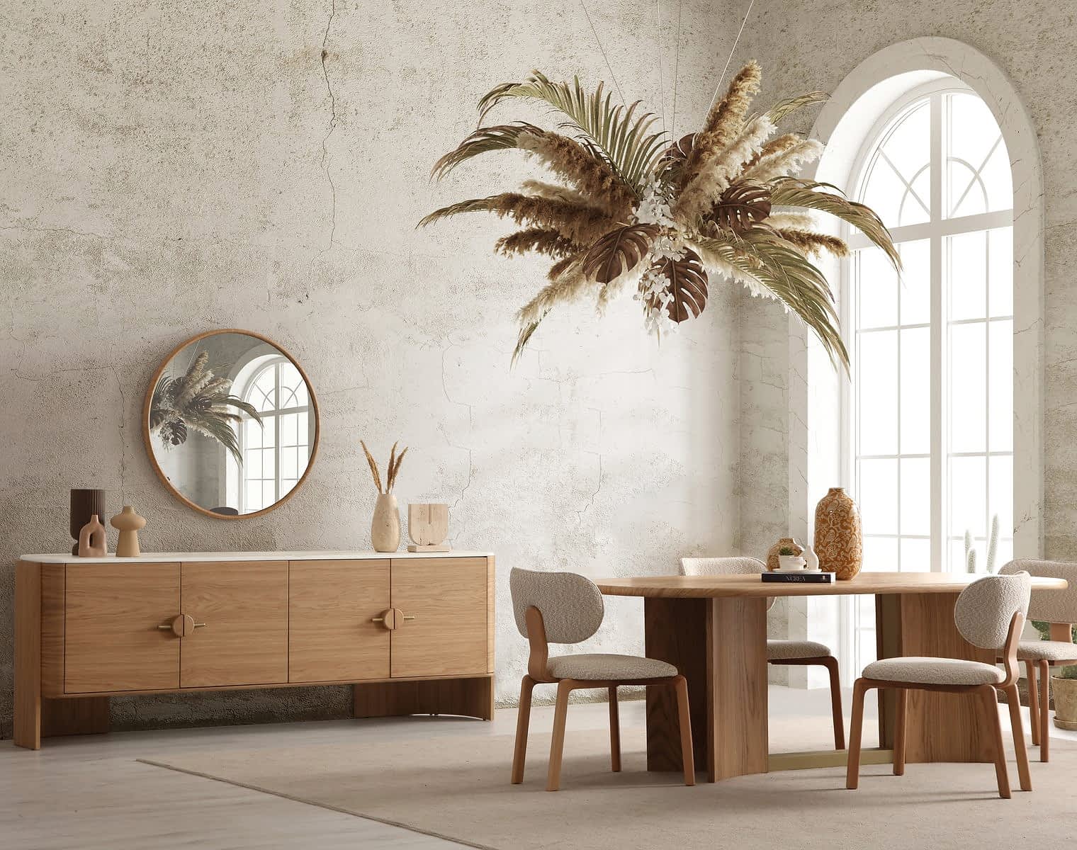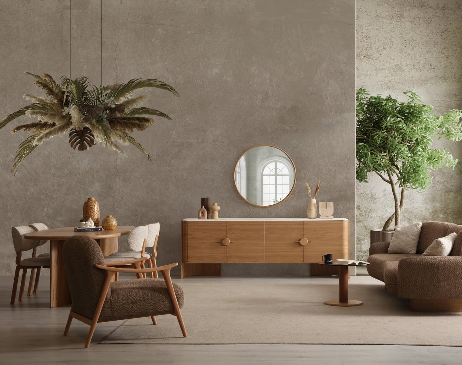 Lucca Premium Yemek Odası Takımı Meşe rengindeki doğal ve sıcak görünümü ile odanıza benzersiz bir atmosfer oluşturmanıza yardımcı olacaktır.